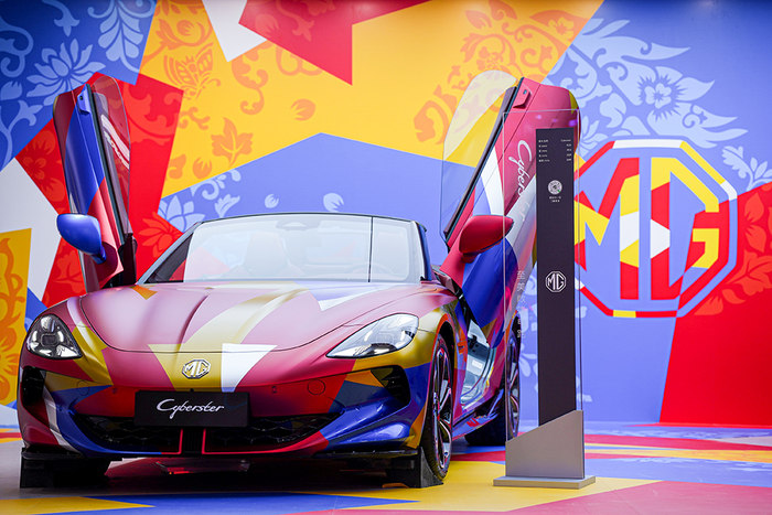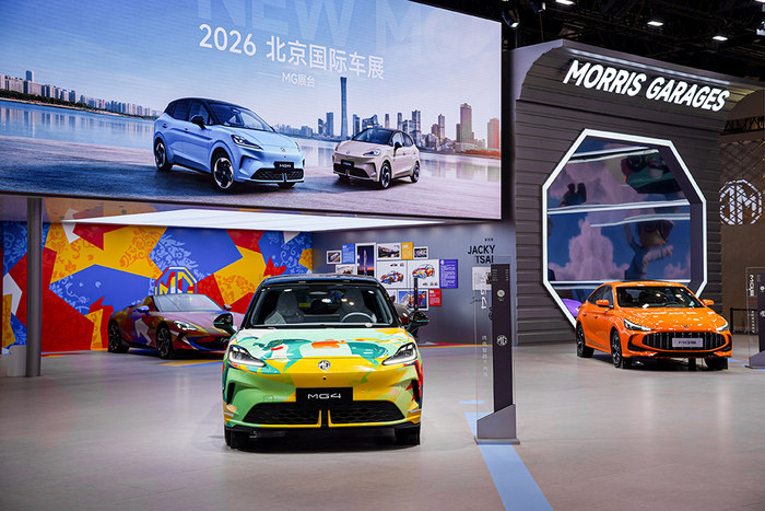 当然,光谈参数太直男了。2026款MG4显然不满足于做一台“数据怪兽”。它新增了保时捷同款冰晶蓝和格调淡雅的杏仁米两个车色,配上黑色悬浮车顶和全新17英寸星芒轮毂,站在那儿就是一副“我不好惹”的姿态。更绝的是,MG还联手国际波普艺术家Jacky Tsai打造联名车衣,并与鲁迅美术学院共创官方潮改——让美术学院科班出身的年轻人,定义年轻人自己的审美。从这一刻起,MG4不再是一台冷冰冰的机器,而是有了潮牌属性的时尚出行单品。