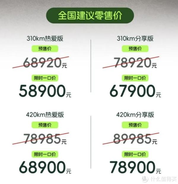纯电代步车市场竞争激烈,几千元差价就划分出不同消费群体。追求极致性价比的客户,会选310km热爱版;对续航有更高需求的,选择420km热爱版;对体验有要求的,选择310km/420km分享版。